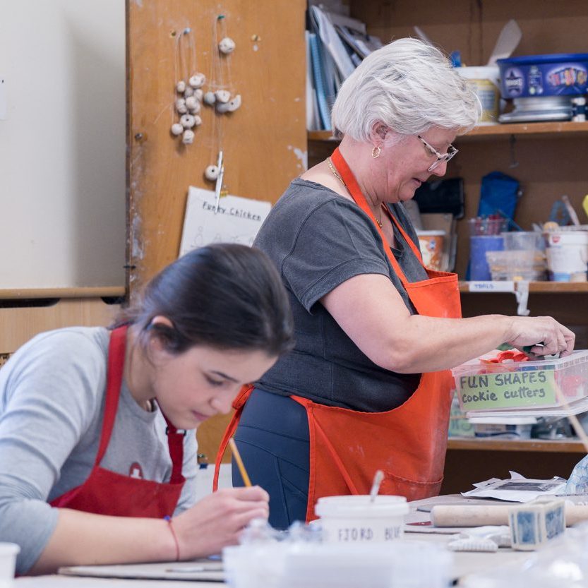 We cover a range of hand-building, wheel throwing, and glazing techniques and work is fired regularly at the Centre. We have six pottery wheels of varying sizes, including one for people with low-mobility that does not require the use of a foot peddle. The wheels are in our bright ‘pottery kitchen’ where you will also find a glazing station. There is a drying room, kiln house with multiple kilns, and a pottery studio where you can sit or stand to work.